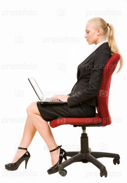 Профиль серьезной деловой женщины, сидящей на кресле и работающей в сети