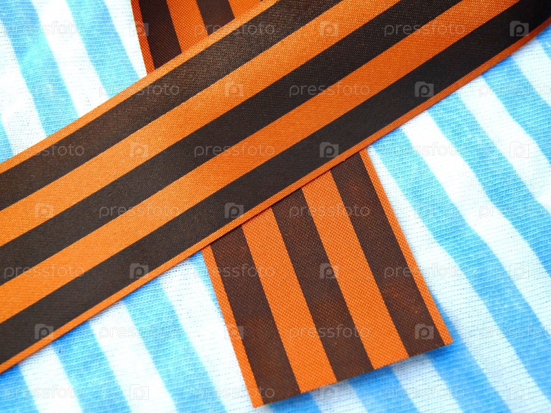 Георгиевская ленточка на бело-голубом полосатом фоне