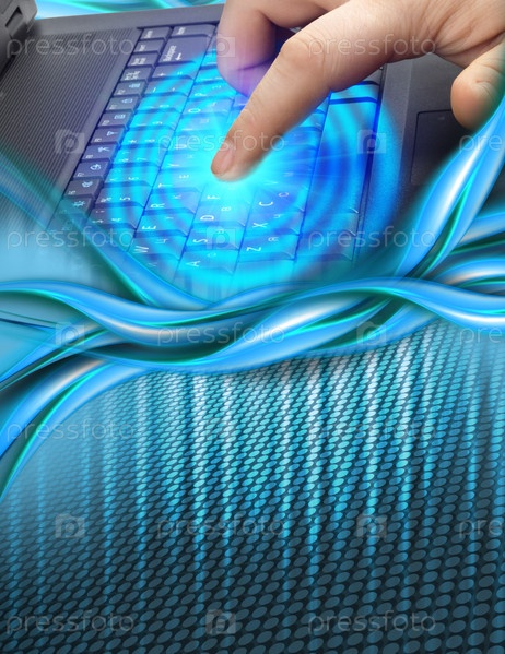 Человек нажимает на клавишу ноутбука