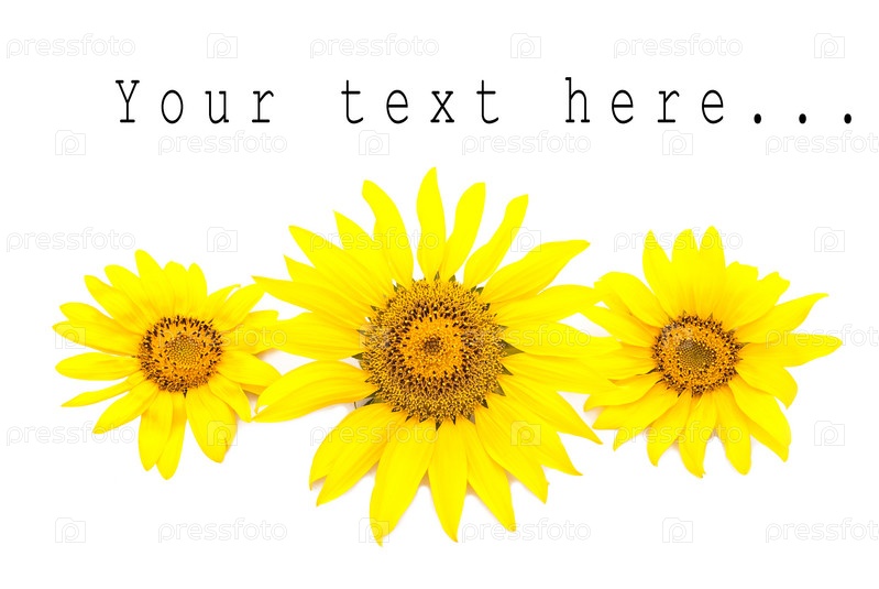Три ярких подсолнечника на белом фоне