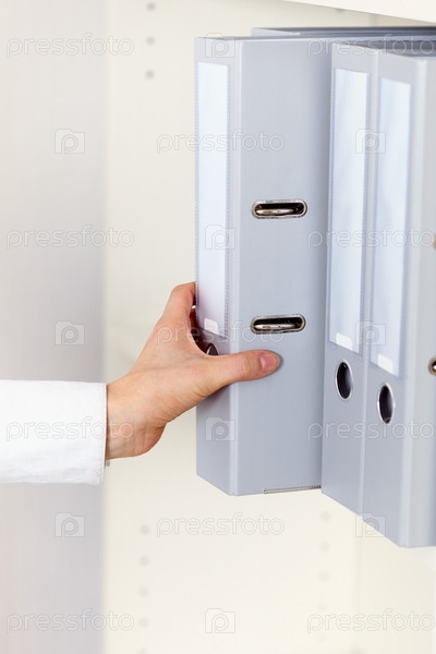 Ручной служащий берет на полку архивные документы