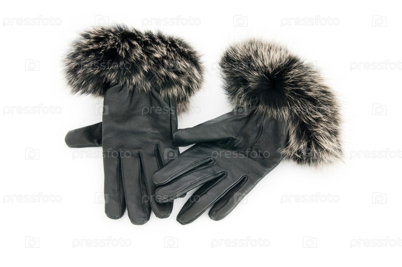 Кожаные женские перчатки на белом фоне