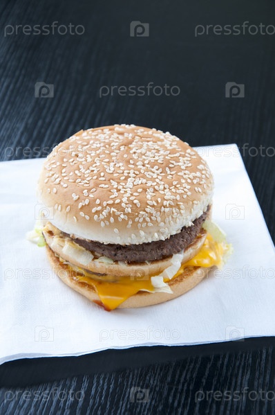 Аппетитный двойной гамбургер на черном фоне