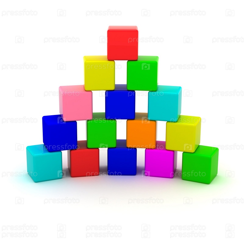 Пирамида из разноцветных кубиков на белом фоне