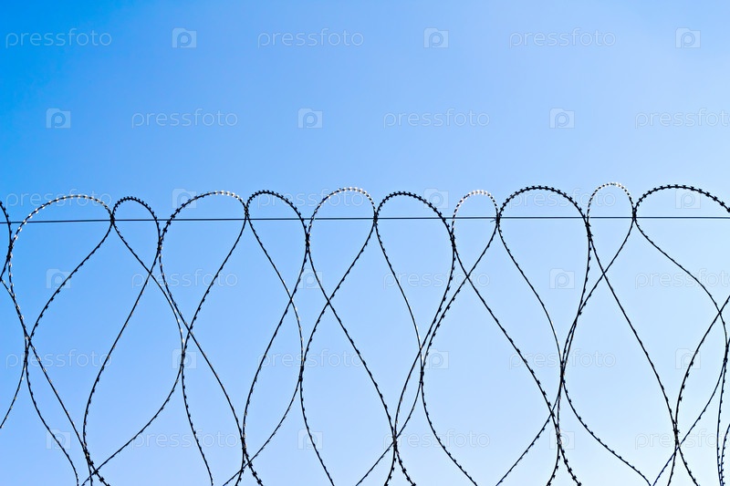 Колючая проволока на фоне голубого неба