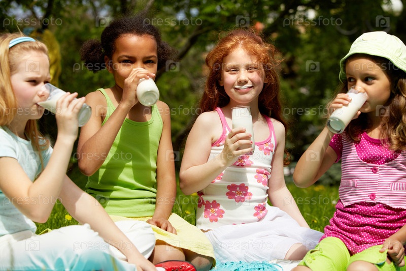 Девочки на зеленой лужайке