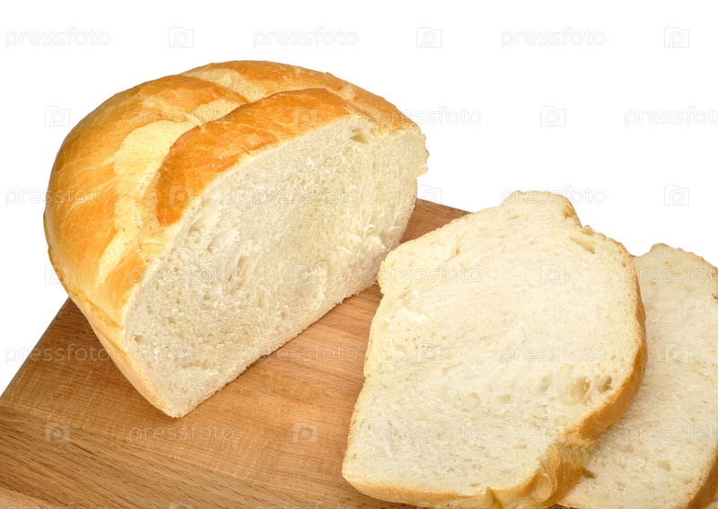 Нарезанный белый хлеб на деревянной доске на белом фоне