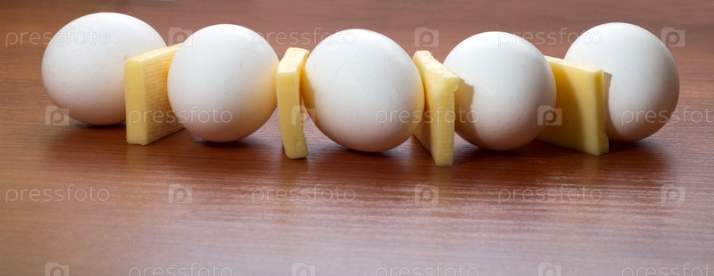 Свежие яйца и сыр на столе