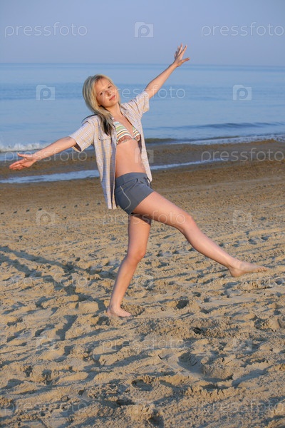 Довольная девушка на пляже