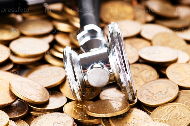 Стетоскоп, лежащий на монетах