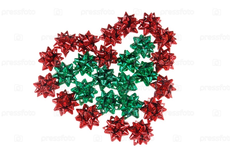 Сердце из красных луков, выделенных на белом фоне
