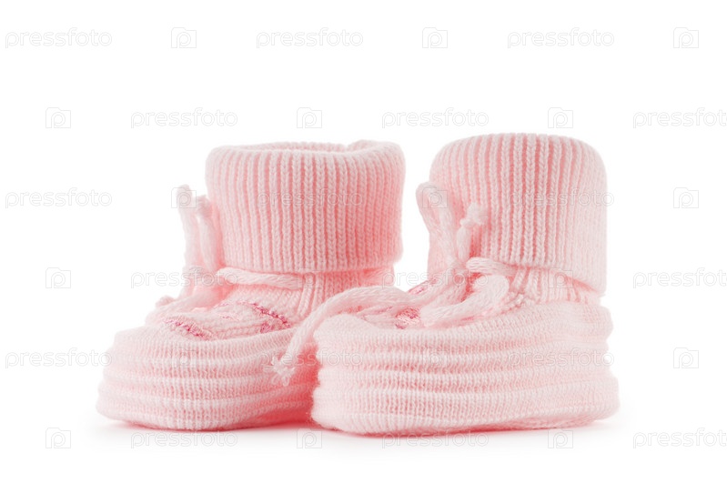 Детские вязаные пинетки на белом фоне