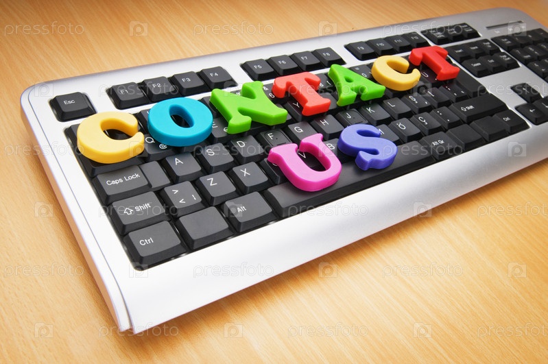 Фраза 'Contact us', выложенная цветными буквами на клавиатуре