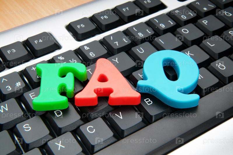 Сокращение 'FAQ', выложенное цветными буквами на клавиатуре