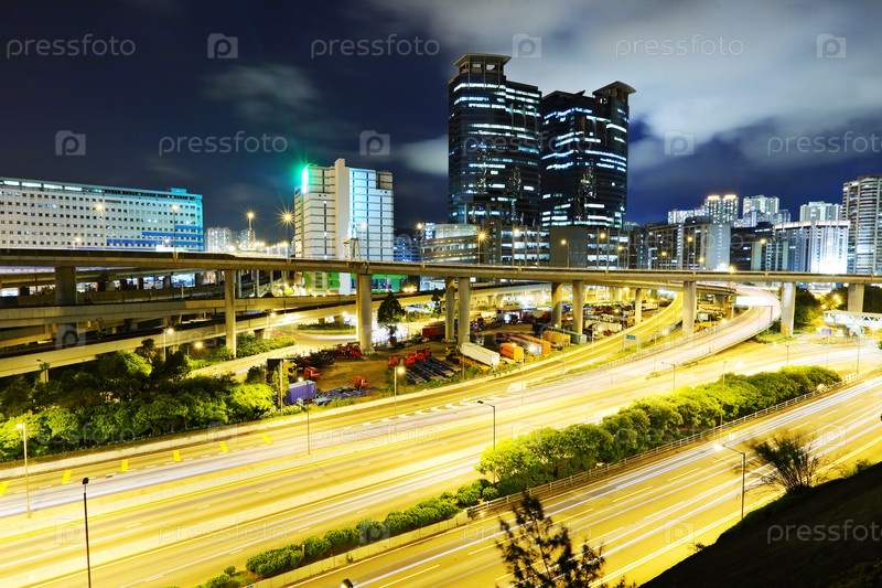 Современный город и шоссе ночью