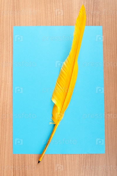 Бумага и перо на столе крупным планом