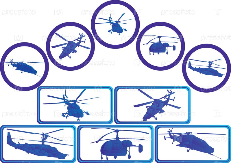Иллюстрация вертолета в разных ракурсах на белом фоне