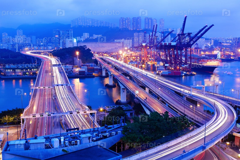 Грузовой терминал и магистраль в Гонконге