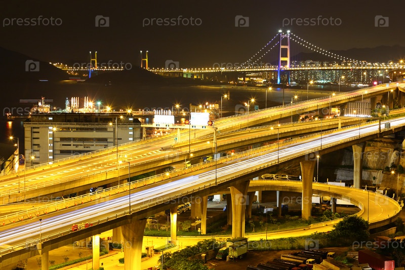 Шоссе и мост ночью