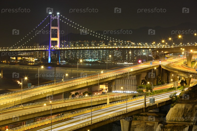 Шоссе и мост ночью