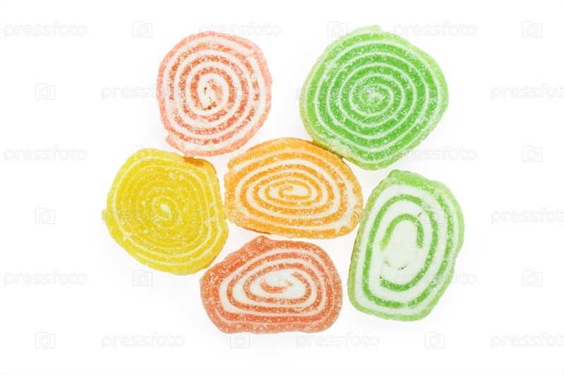 Разноцветные мармеладные рулеты на белом фоне