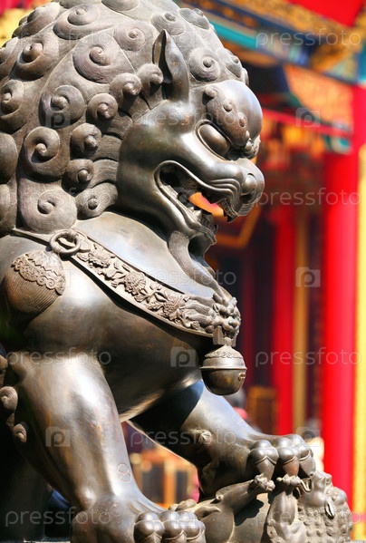 Бронзовый лев в китайском храме