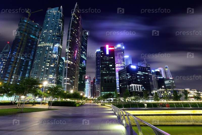 Город Сингапур ночью