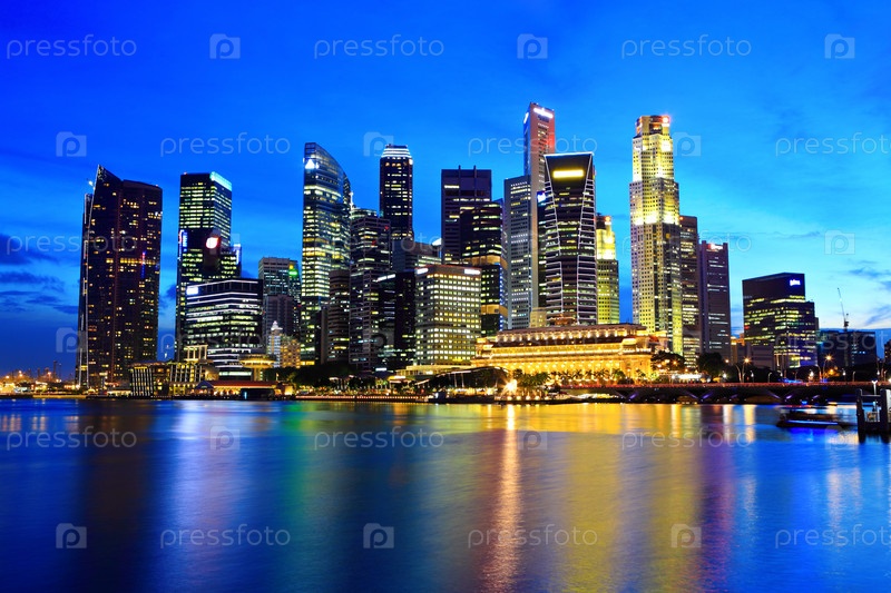 Город Сингапур ночью