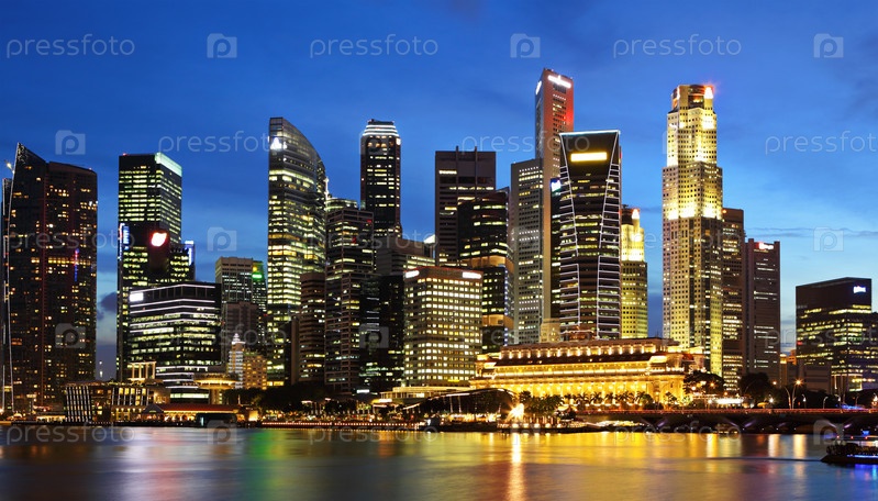 Город Сингапур ночью