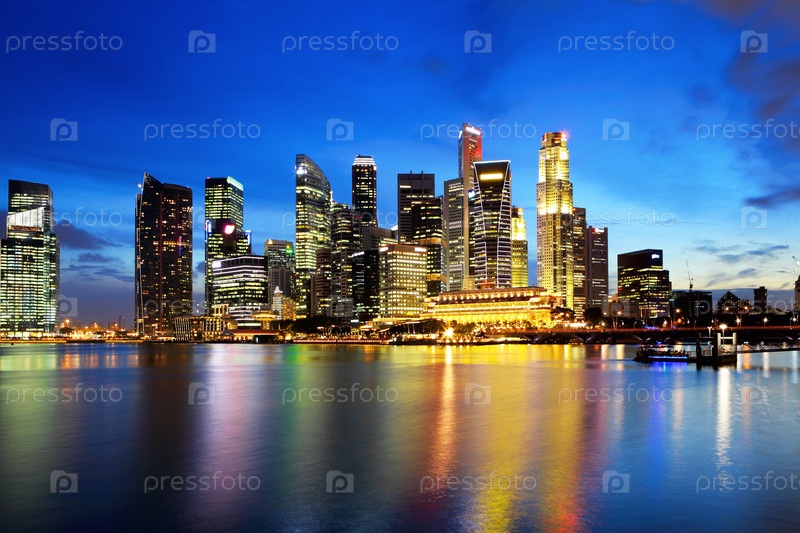 Город Сингапур ночью