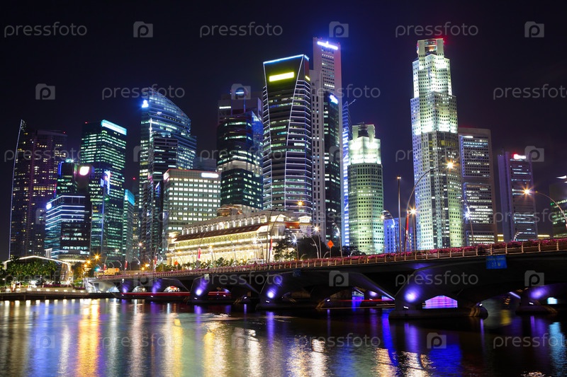 Город Сингапур ночью