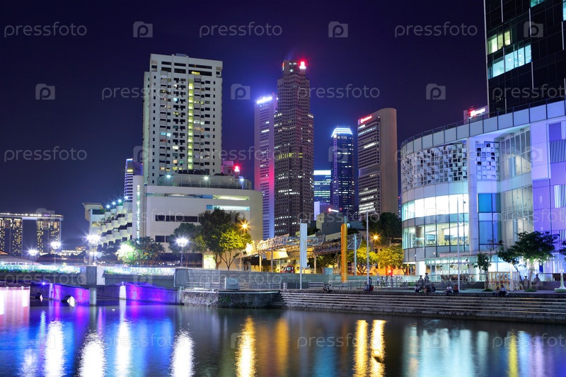 Город Сингапур ночью