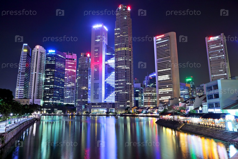 Город Сингапур ночью