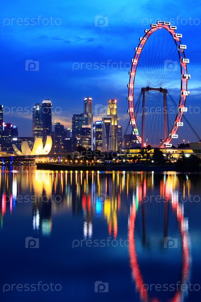 Город Сингапур ночью