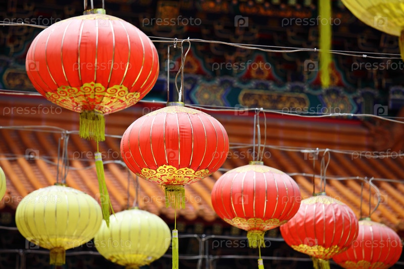 Китайские фонари перед храмом