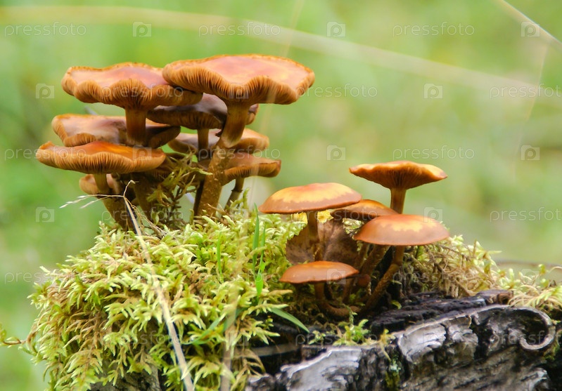 Грибы на мшистом пне
