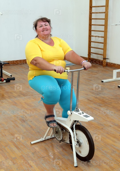 Полная женщина на велотренажере