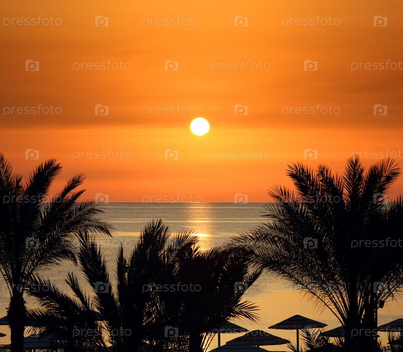 Пальмы и восход над морем