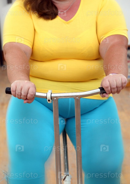 Полная женщина на велотренажере