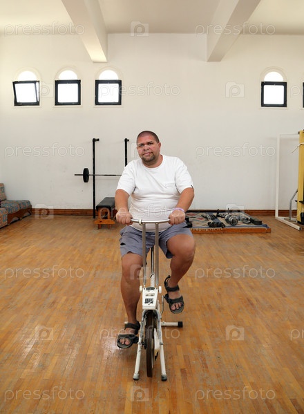 Полный мужчина на велотренажере