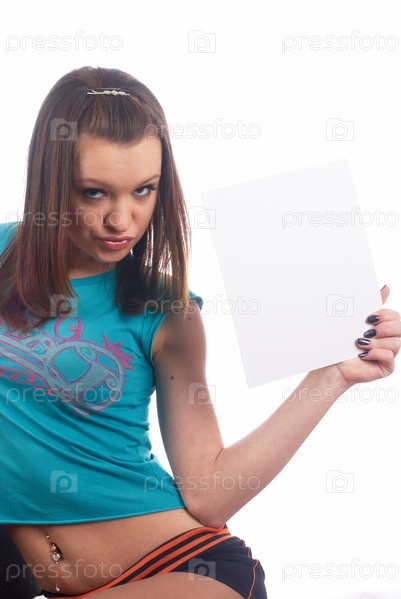 Девушка держит пустой лист