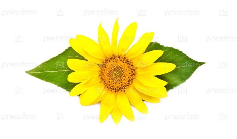 Яркий желтый подсолнух на белом фоне