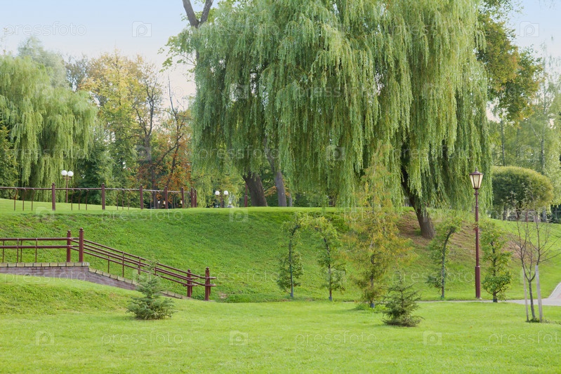 Зеленый парк с ивами в Гродно, Беларусь