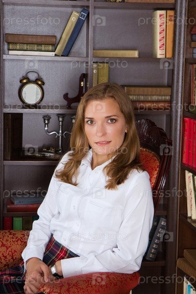 Молодая блондинка в библиотеке