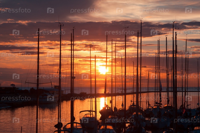 Яхты в гавани на закате