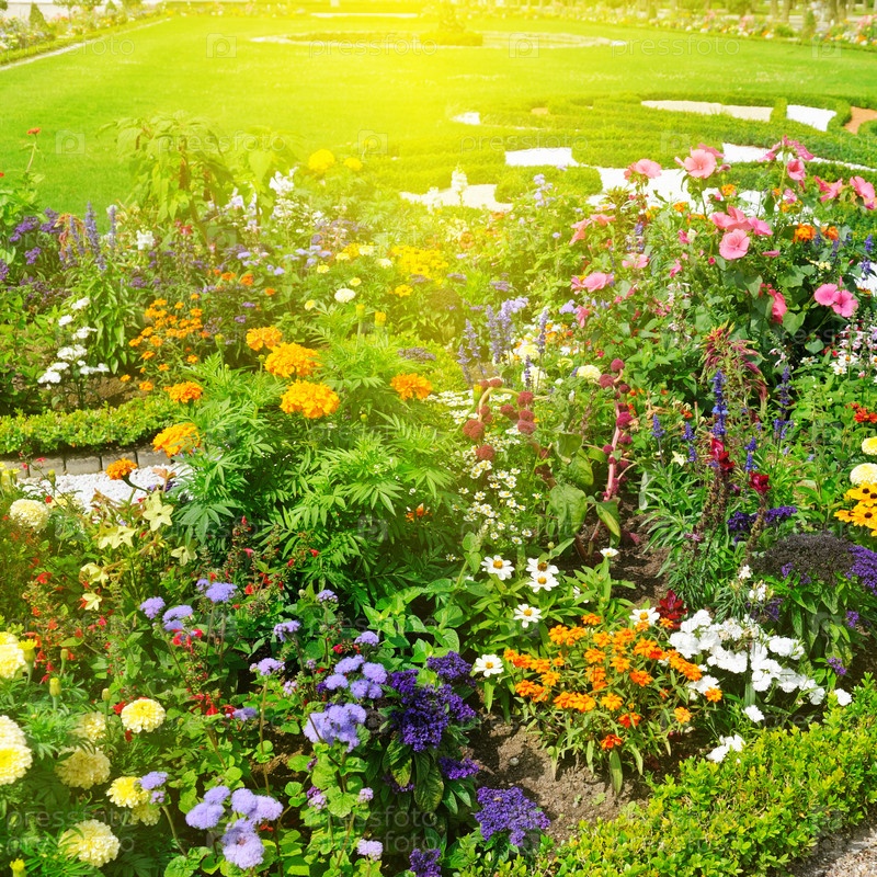 Красивый цветник и восход солнца