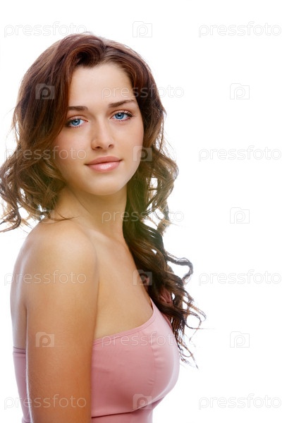 Девушка в розовом платье изолирована на белом фоне