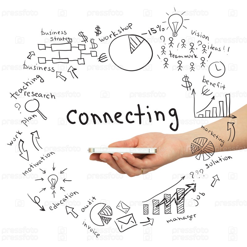 Рука держит смартфон. Бизнес эскизы
