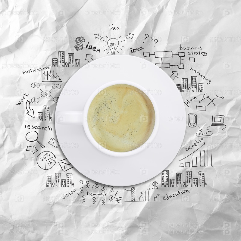 Чашка кофе и символы бизнеса