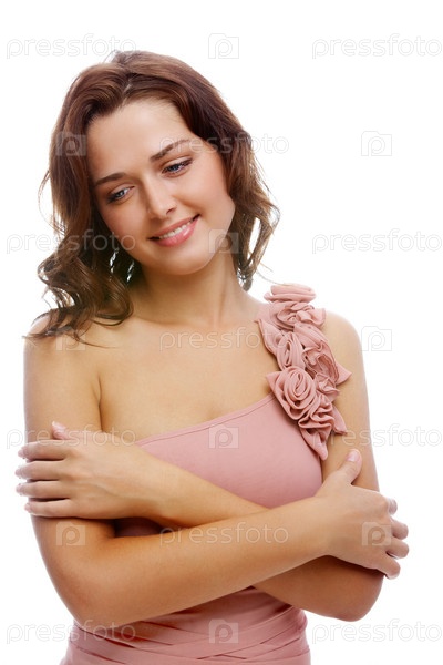 Девушка в розовом платье изолирована на белом фоне